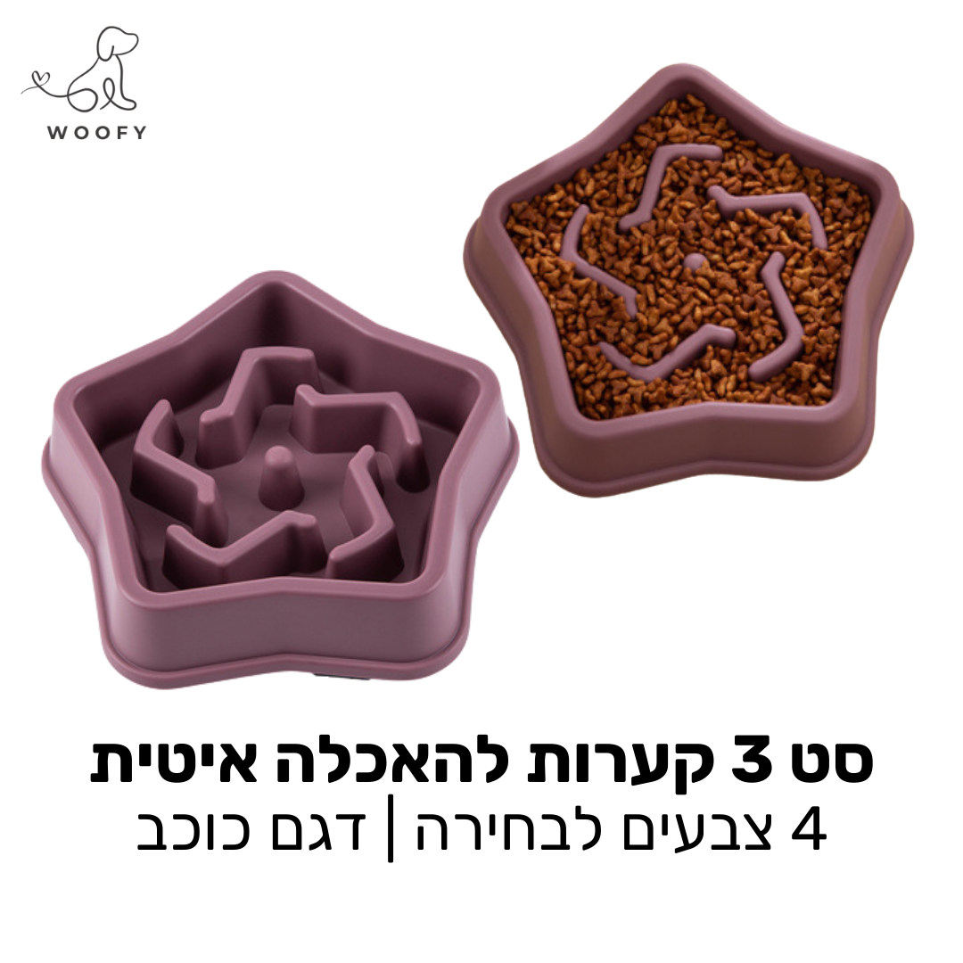 סט שלוש קערות האכלה איטית - דגם כוכב