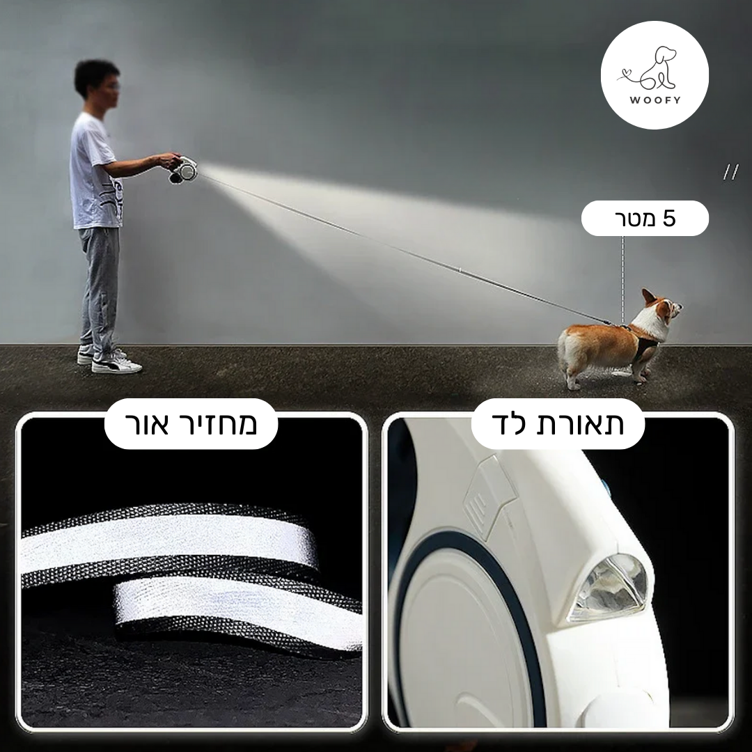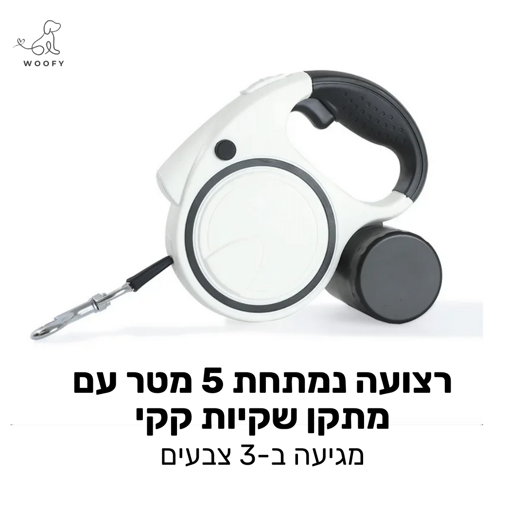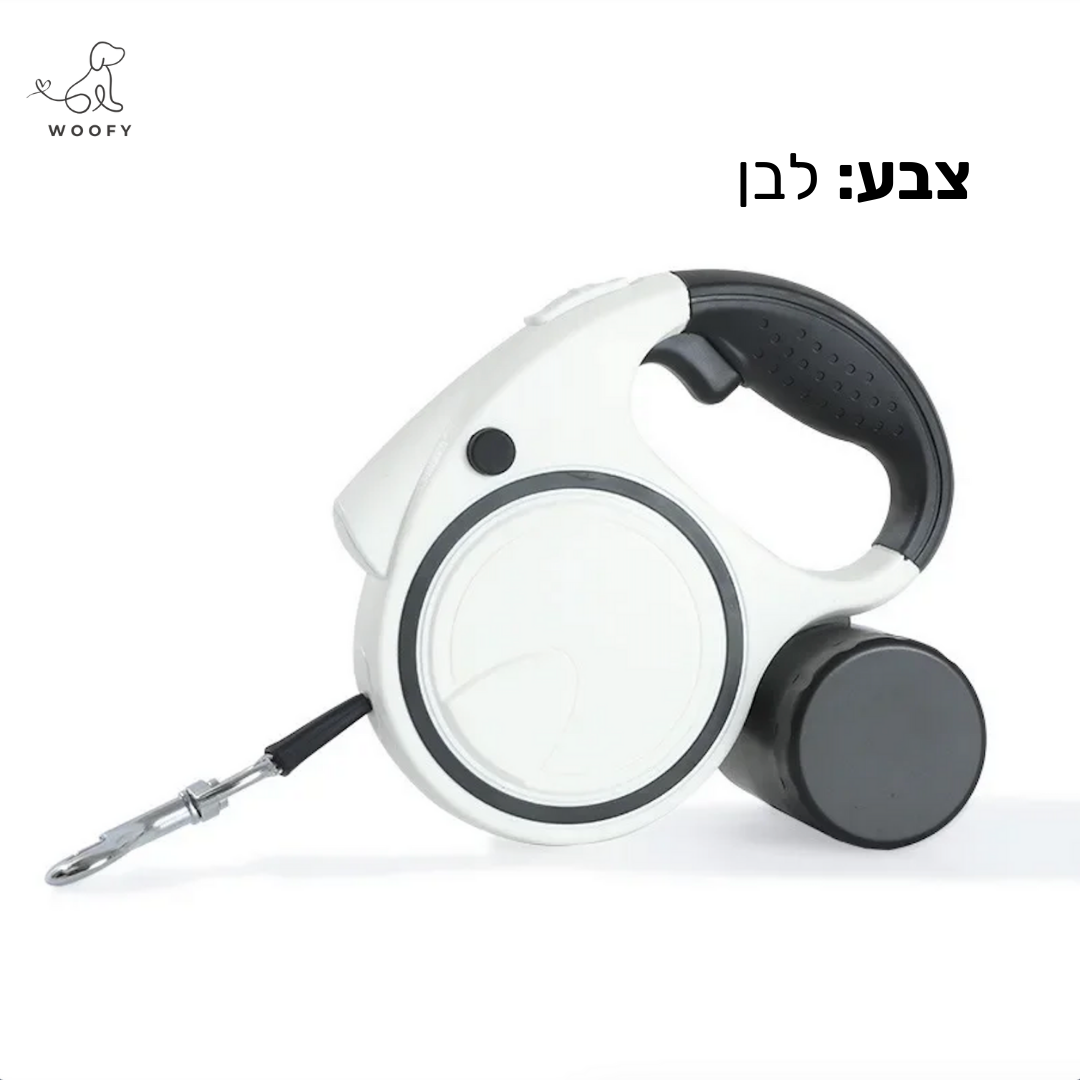 רצועה נמתחת 5 מטר עם מתקן שקיות קקי