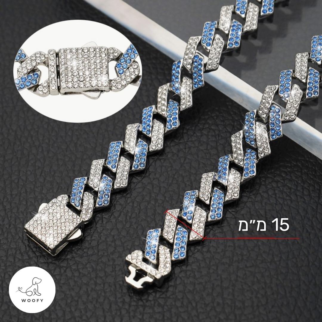 🔹 עיצוב יוקרתי ומלא בנוכחות – קולר רחב 15 מ"מ בסגנון שרשרת קובנית נוצצת.