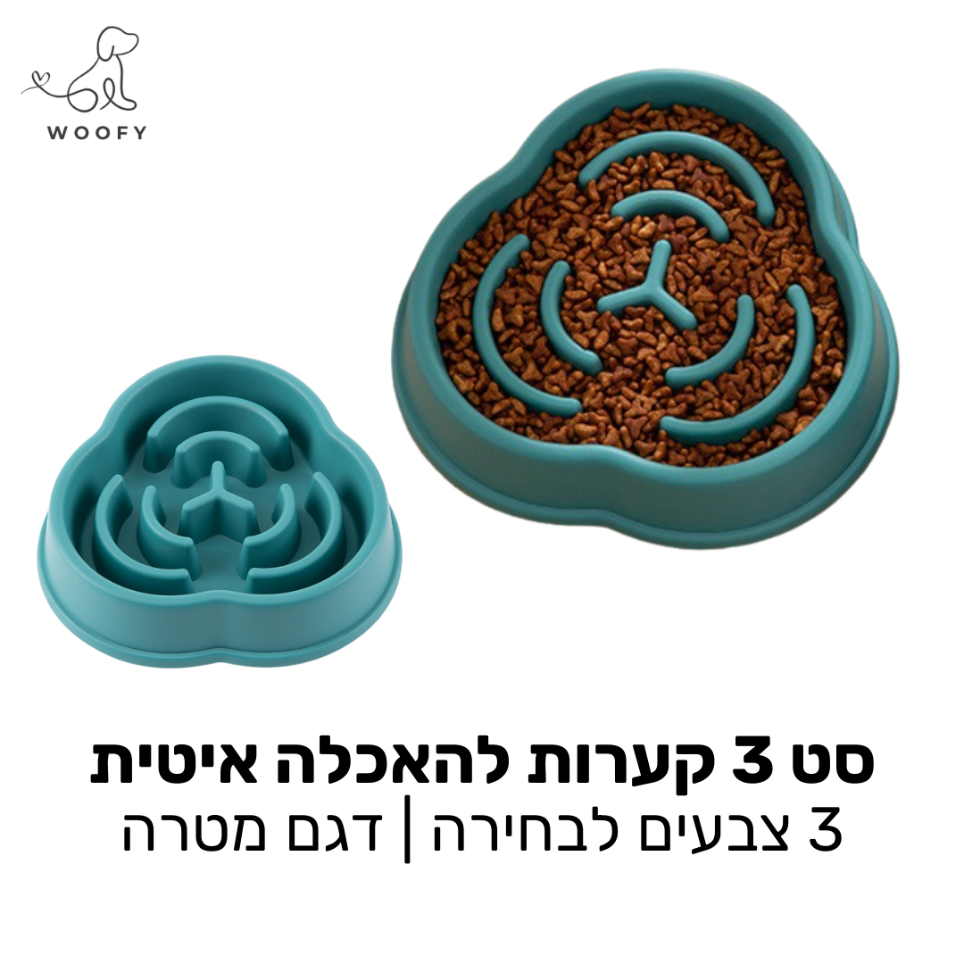 סט 3 קערות האכלה איטית - דגם מטרה